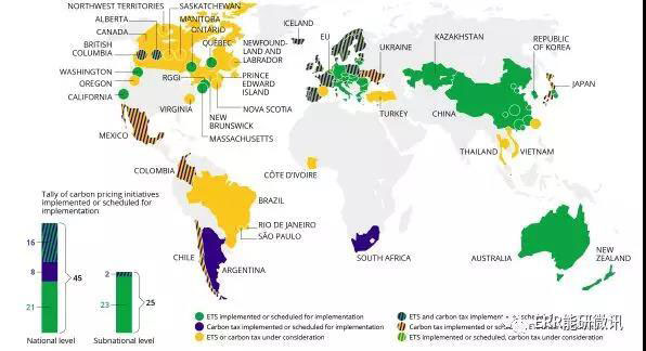 2018年世界范圍內(nèi)國(guó)家排放交易系統(tǒng)和碳污染定價(jià)系統(tǒng)現(xiàn)狀