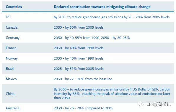 降低排放和增加溫室氣體吸收國(guó)家層面的目標(biāo)列舉