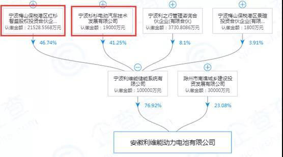 安徽利維能背后的資本包括紅杉智盛以及杉杉股份,其中紅杉智盛占股46.74%,寧波杉杉電動汽車占股41.25%。