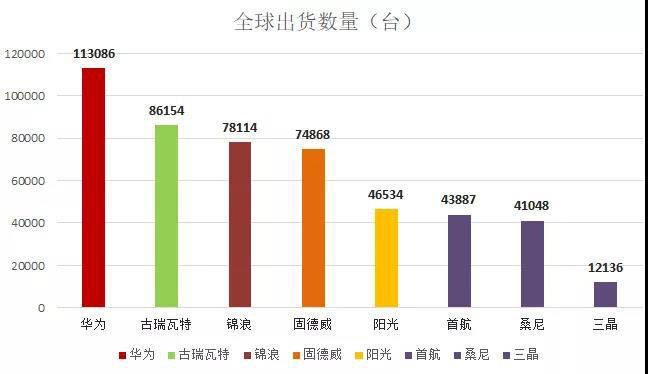 下圖可見,華為、古瑞瓦特、錦浪、固德威位列出貨量第一梯隊,逆變器出貨數(shù)量均超過了7萬臺。