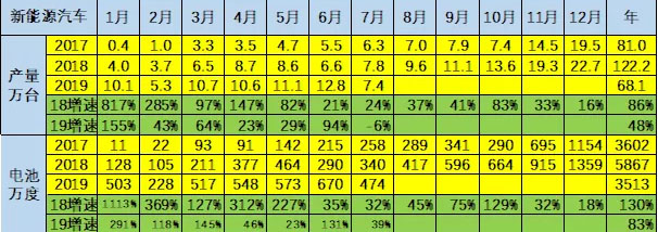 從2018年年末到19年1-7月的汽車走勢(shì)看,2019年的電池需求是較好增長(zhǎng)狀態(tài), 2019年新能源車新補(bǔ)貼政策的波段釋放需求和實(shí)現(xiàn)供需的逐步標(biāo)準(zhǔn)提升的放量的拉動(dòng)效果較好。