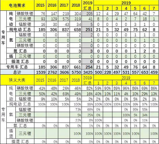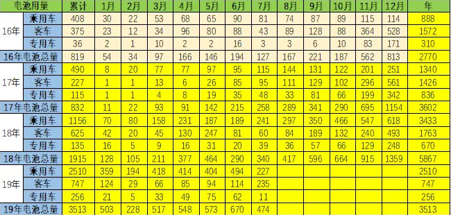 此表的分類的電池對(duì)應(yīng)的專用車車包含了微客和輕客,微卡和輕卡等各類以5字頭的車型為主。由于磷酸鐵鋰的資源充足,價(jià)格低,加之使用范圍越來越窄,因此不如三元電池的需求旺盛。。