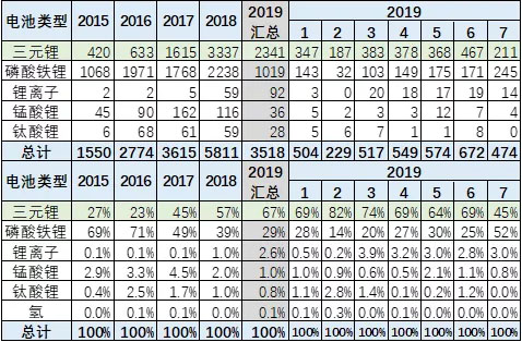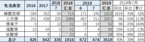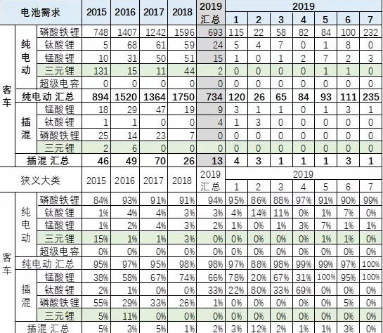 中國儲(chǔ)能網(wǎng)訊:19年1-7月的延續(xù)期的開局超強(qiáng)。19年1季度的延續(xù)期的開局超強(qiáng),4-6月仍能在退坡后延續(xù)高增長(zhǎng),體現(xiàn)2019年開局的延續(xù)槍補(bǔ)貼行情的特征。7月電池需求的三元鋰電池大幅下降,磷酸鐵鋰暴漲,補(bǔ)貼效應(yīng)凸顯。