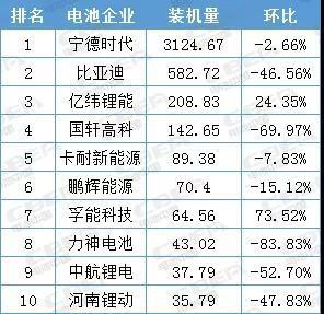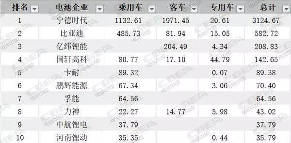 2019年7月動(dòng)力電池裝機(jī)量TOP10企業(yè)數(shù)據(jù)