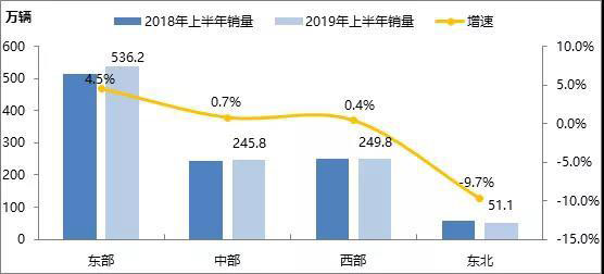全國各區(qū)域2019年上半年市場增長情況
