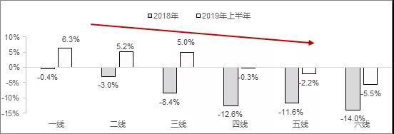 一至六線城市2019年上半年市場增長情況