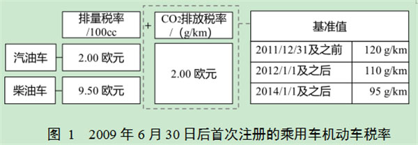 德國機(jī)動(dòng)車稅為保有稅,車主需每年繳納,目前計(jì)稅依據(jù)為發(fā)動(dòng)機(jī)類型、發(fā)動(dòng)機(jī)排量、CO2排放量,其中由發(fā)動(dòng)機(jī)排量決定的稅額(汽油車2歐元/100cc)與CO2排放量決定的稅額(高于基準(zhǔn)值的部分,每公里CO2排放量每增加1g需額外支付2歐元)相互獨(dú)立,二者之和為車主所需繳納的最終稅額。首次注冊于2009年7月1日至2011年5月17日的純電動(dòng)汽車免征5年機(jī)動(dòng)車稅,對于2011年5月18日至2020年12月31日期間注冊的純電動(dòng)汽車免征10年機(jī)動(dòng)車稅。2021年起,依據(jù)重量分段累進(jìn)對純電動(dòng)汽車征稅(11.25~12.78歐元/200kg),為繼續(xù)鼓勵(lì)節(jié)能減排,減按50%征收。