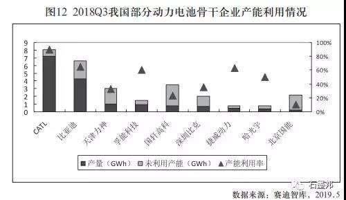 電池產(chǎn)能快速擴(kuò)大導(dǎo)致絕大部分企業(yè)產(chǎn)能利用率不高。2018年第三季度,CATL產(chǎn)能利用率達(dá)到了90%,比亞迪、孚能科技、捷威動(dòng)力、哈光宇的產(chǎn)能利用率在50%-60%左右,而捷威動(dòng)力和哈光宇的產(chǎn)能還較低,包括天津力神、國(guó)軒高科、深圳比克、北京國(guó)能等在內(nèi)的一大批企業(yè)的產(chǎn)能利用率都 在30%以下。