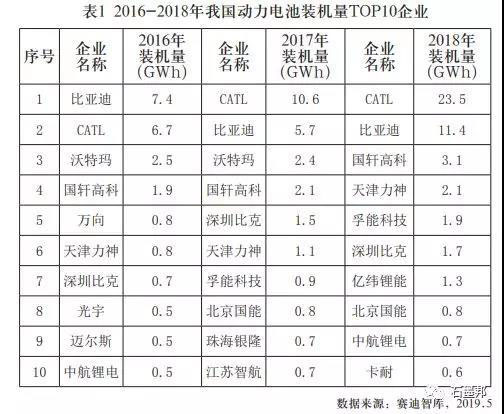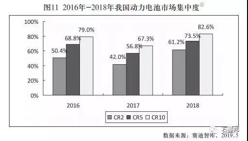 2018年,我國(guó)實(shí)現(xiàn)新能源汽車(chē)配套的動(dòng)力電池廠商下降至90家,較2016年減少一半,較2017年下降33%。與此同時(shí),動(dòng)力電池市場(chǎng)集中度不斷提高,正逐步向?qū)幍聲r(shí)代、比亞迪兩家龍頭企業(yè)集中。