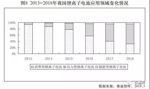從2015年開(kāi)始,隨著動(dòng)力型鋰離子電池產(chǎn)量迅猛增長(zhǎng),我國(guó)鋰離子電池產(chǎn)業(yè)結(jié)構(gòu)發(fā)生了顯著變化,消費(fèi)型鋰離子電池獨(dú)大的市場(chǎng)格局被打破。從鋰離子電池出貨量看,2018年我國(guó)鋰離子電池總出貨量達(dá)到了102GWh,同比增長(zhǎng)27%。