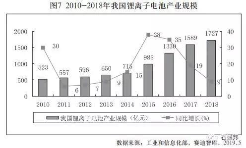 2018年我國(guó)鋰離子電池產(chǎn)業(yè)規(guī)模達(dá)到1727億元,再次創(chuàng)下歷史新高,同比增長(zhǎng)9%,增速較2017年回落10個(gè)百分點(diǎn),延續(xù)穩(wěn)步增長(zhǎng)勢(shì)頭。產(chǎn)業(yè)規(guī)模增速較產(chǎn)量增速低了近17個(gè)百分點(diǎn),主要原因是2018年動(dòng)力電池價(jià)格出現(xiàn)了明顯下滑。