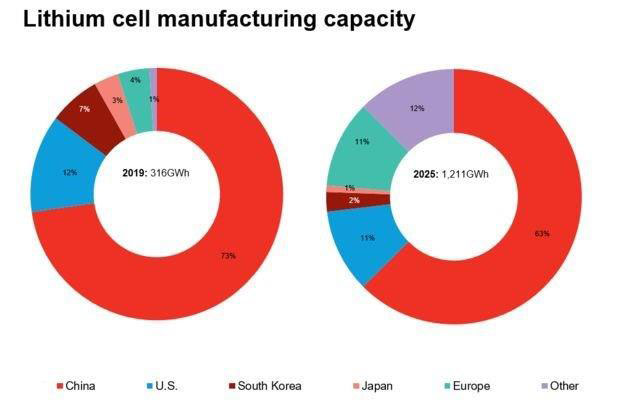 ▲到2025年,歐洲電池制造市場份額將從今年的4%增長到11%