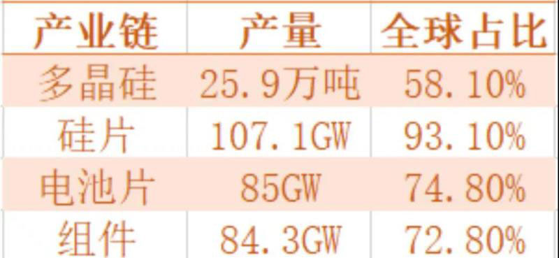 2018年光伏產(chǎn)業(yè)各環(huán)節(jié)產(chǎn)量及全球占比情況(來(lái)源:CPIA)