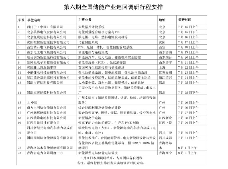 為進(jìn)一步了解國內(nèi)儲(chǔ)能產(chǎn)業(yè)技術(shù)路線、市場(chǎng)格局與相關(guān)項(xiàng)目建設(shè)情況,并向行業(yè)主管部門提出合理化建議。中國化學(xué)與物理電源行業(yè)協(xié)會(huì)儲(chǔ)能應(yīng)用分會(huì)決定聯(lián)合中國電工技術(shù)學(xué)會(huì)電池專業(yè)委員會(huì)、中國儲(chǔ)能網(wǎng)將于近期組織開展2019年度第六期全國儲(chǔ)能產(chǎn)業(yè)巡回走訪調(diào)研工作,現(xiàn)將具體行程安排通知如下: