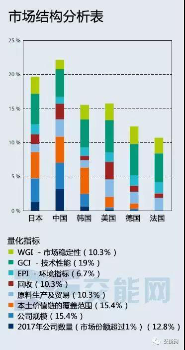日本在2014年前在工業(yè)環(huán)境上占據(jù)主導(dǎo)地位,但目前已經(jīng)被中國超越。在近幾年的高增長(zhǎng)預(yù)測(cè)(組件,電池生產(chǎn),銷售市場(chǎng)),現(xiàn)在已經(jīng)轉(zhuǎn)變?yōu)楦叩氖袌?chǎng)份額。中國引領(lǐng)幾乎所有的指標(biāo),并且占據(jù)了巨大的主導(dǎo)優(yōu)勢(shì)。在未來,中國將繼續(xù)擴(kuò)大與日本,韓國的差距。到目前為止,美國,德國和法國已經(jīng)完全落后亞洲地區(qū)國家。