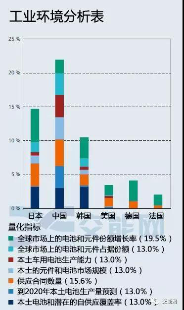 該類別使用七個(gè)指標(biāo)分析各國的工業(yè)環(huán)境:電池的生產(chǎn)和生產(chǎn)預(yù)測(cè),覆蓋鋰離子電池自身使用的潛力,價(jià)值鏈的結(jié)構(gòu),自己國家的銷售市場(chǎng),世界市場(chǎng)份額以及在供應(yīng)合同數(shù)量的基礎(chǔ)上描述了各國的工業(yè)環(huán)境指標(biāo)。