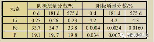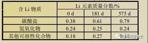 表2 100%DOD電池陽極可溶性鋰構(gòu)成