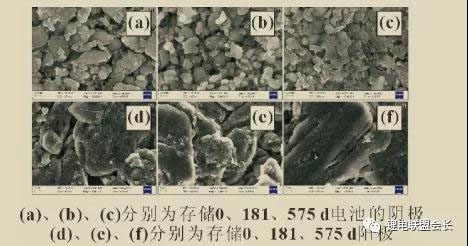 圖3(d),(e),(f)中,存儲181和575d電池陽極首次充電比容量分別為未經(jīng)存儲電池陽極首次充電比容量(304.5mAh/g)的90.4%和84.5%,與實際電池的容量保持率接近(90.7%和85.8%)。所以,電池容量衰減的主要原因是全電池中活性鋰離子的損失。