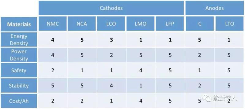 五、電池活性材料有哪些?性能對比如何?
