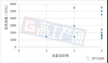 不同級別加氫站的投資規(guī)模(萬元)分析