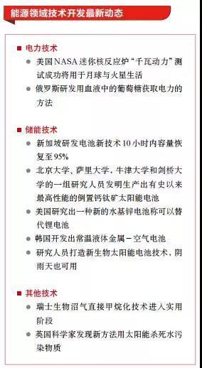 未來,能源將繼續(xù)向著低碳化、綠色、高效方向發(fā)展。歐盟科研創(chuàng)新資助計(jì)劃“地平線2020”2018 ~ 2020 年度支出方案中,“低碳和適應(yīng)氣候變化的未來”領(lǐng)域?qū)@ 33 億歐元預(yù)算,按年度工作計(jì)劃,可再生能源、能效建筑、電動(dòng)運(yùn)輸和儲(chǔ)存方案 4個(gè)清潔能源領(lǐng)域的項(xiàng)目將獲 22 億歐元撥款。俄能源部宣布支持設(shè)立遠(yuǎn)東聯(lián)邦區(qū)可再生能源發(fā)展基金,并將制訂具體建議。英國(guó)將投入 2800 萬英鎊資助可再生能源創(chuàng)新、智慧能源系統(tǒng)創(chuàng)新、低碳工業(yè)創(chuàng)新、核能創(chuàng)新等能源創(chuàng)新項(xiàng)目,作為能源創(chuàng)新計(jì)劃 (2016 ~ 2021年 )的一部分。特朗普政府宣布退出巴黎協(xié)定,全球應(yīng)對(duì)氣候變化形勢(shì)變得撲朔迷離,但全球能源領(lǐng)域轉(zhuǎn)型已是大勢(shì)所趨,綠色能源技術(shù)、低碳能源技術(shù)必然是未來發(fā)展主要方向。