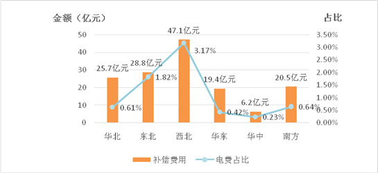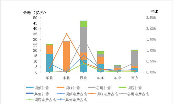 圖1 各區(qū)域電力輔助服務補償費用情況