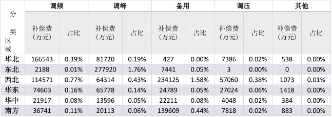 (二)各區(qū)域電力輔助服務補償費用來源情況