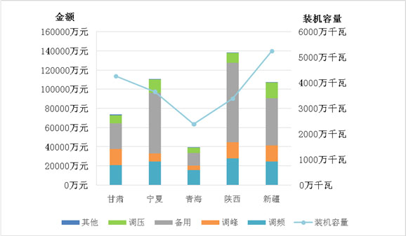 圖9 西北區(qū)域分?。ǖ貐^(qū))電力輔助服務補償分項費用情況