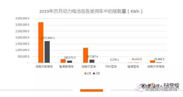 從車輛細分類別來看,2019年2月電動汽車裝機量主要來源于純電動乘用車。純電動乘用車2月產(chǎn)量為37193輛,裝機量為1.73GWh,占總裝機量的76.9%,比1月提升了12個百分點。其他車輛細分市場表現(xiàn)平平,純電動客車隨著產(chǎn)量的大幅縮水,2月裝機量只有0.26GWh。而產(chǎn)量只有240輛的純電動專用車則只有45.7MWh。