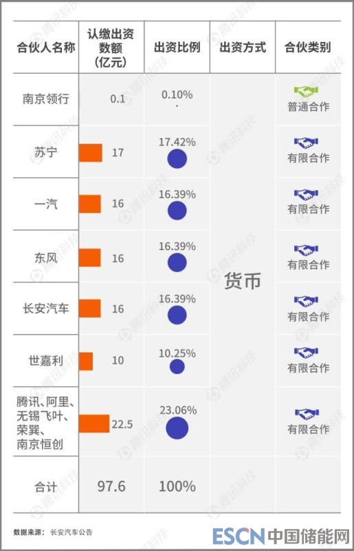 中國(guó)儲(chǔ)能網(wǎng)訊:長(zhǎng)安汽車、東風(fēng)汽車、一汽分別認(rèn)繳出資額16億元,騰訊、阿里等公司合計(jì)認(rèn)繳出資額22.5億元,蘇寧認(rèn)繳17億元。