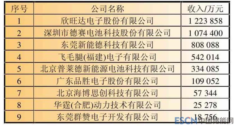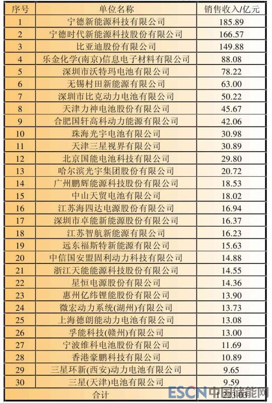 表2 2017年中國鋰離子電池銷售收入30強(qiáng)企業(yè)