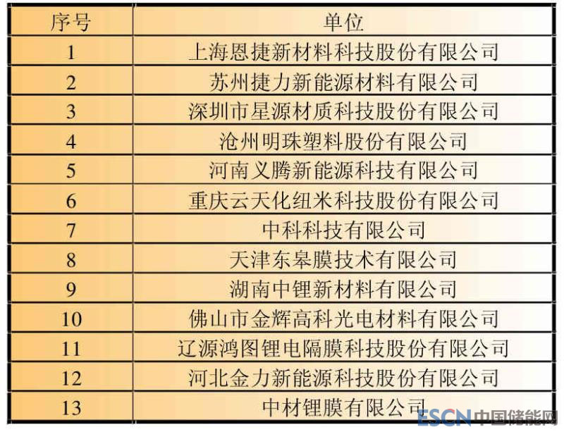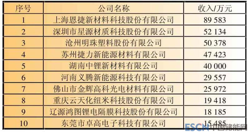 表12 2017年鋰離子電池主要隔膜企業(yè)銷售收入