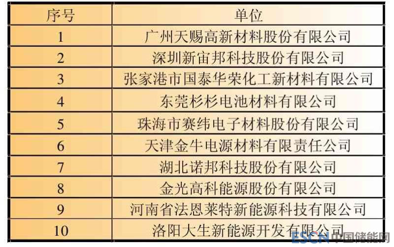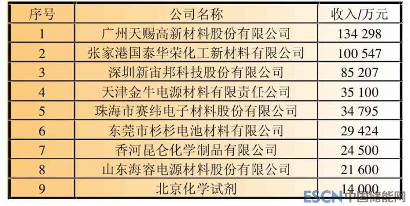 表10 2017年鋰離子電池主要電解液企業(yè)銷售收入