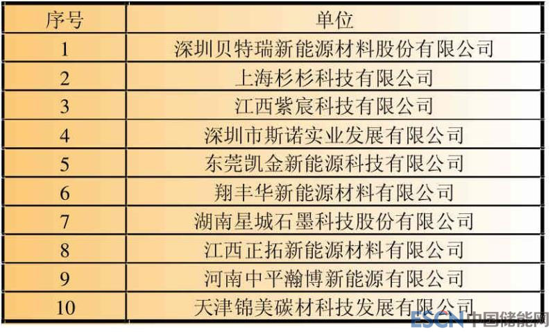 表8 2017年鋰離子電池負(fù)極材料企業(yè)產(chǎn)量排名