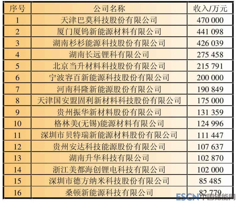 2017年鋰離子電池主要正極材料企業(yè)銷售收入如表7所示。