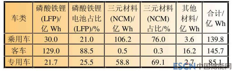 表6 2017年各種車型動(dòng)力電池裝機(jī)量及占比