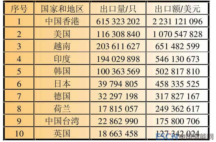 2017年中國鋰離子電池出口量約為17.11億只,2016年出口量約為15.17億只,與上一年相比,同比增長了12.79%。2017年鋰離子電池出口額約為80.48億美元,2016年出口額約為68.41億美元,同比增長了17.64%。2017年中國鋰離子電池出口方向,數(shù)量及出口額如表3所示。2017年中國鋰離子電池出口額20強(qiáng)企業(yè)如表4所示,2017年中國動(dòng)力鋰離子電池裝機(jī)量前20強(qiáng)企業(yè)如表5所示。