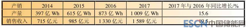 表1 2014-2017年中國鋰離子電池產(chǎn)銷