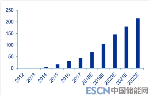我國新能源汽車用動(dòng)力電池產(chǎn)量(單位:GWh)
