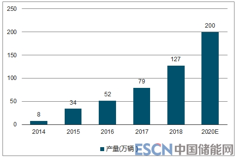 在“十三五”規(guī)劃中,新能源汽車的戰(zhàn)略地位大幅度提升。我國將新能源汽車納入重點(diǎn)發(fā)展的戰(zhàn)略新興產(chǎn)業(yè)后,行業(yè)規(guī)??焖侔l(fā)展。2013-2017年,我國純電動(dòng)汽車銷量從1.5萬輛增長至65.2萬輛,插電混合動(dòng)力汽車銷量從約3000輛增長至12.5萬輛。2017年國內(nèi)新能源汽車銷量規(guī)模已經(jīng)達(dá)到了77.7萬輛,其中新能源乘用車銷量為57.8萬輛,占全球比例接近50%。2017年國內(nèi)動(dòng)力電池產(chǎn)量約36Gwh,占全球比例超過60%,已經(jīng)發(fā)展成為全球最大的新能源汽車市場。