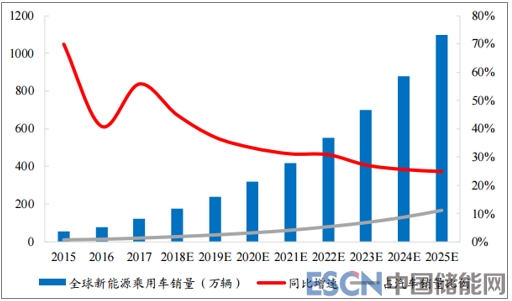全球新能源汽車產(chǎn)量及預(yù)測(單位:萬輛)