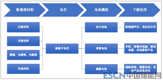 中國儲(chǔ)能網(wǎng)訊:鋰電池上游主要是正極、負(fù)極材料,隔膜、電解液、電解質(zhì)以及外殼包裝等其他材料。中游環(huán)節(jié)是由原材料加工制成鋰離子電芯,并成組為電池包。電池分為動(dòng)力電池、消費(fèi)電池、儲(chǔ)能電池三大類,應(yīng)用于不同的下游領(lǐng)域,動(dòng)力電池是新能源汽車核心的零部件環(huán)節(jié)。
