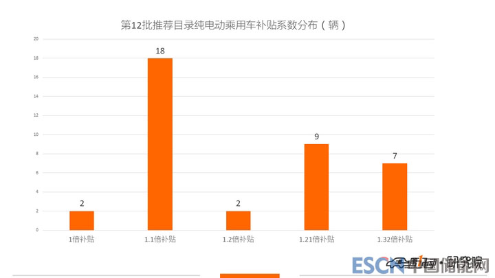 綜合以上,本批目錄38款純電動(dòng)乘用車中,按1倍系數(shù)補(bǔ)貼的車有2款,按1.1倍系數(shù)補(bǔ)貼的有18款,按1*1.2=1.2倍系數(shù)補(bǔ)貼的有2款,按1.1*1.1=1.21倍系數(shù)補(bǔ)貼的有9款,按1.1*1.2=1.32倍系數(shù)補(bǔ)貼的有7款。