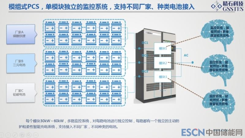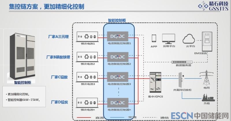 精石電氣集控鏈方案,每個電箱一對一精細(xì)化控制管理,有效延長電池壽命,提高系統(tǒng)效率,配套完善的監(jiān)控,快速發(fā)現(xiàn)問題;故障電池隔離,不影響整個系統(tǒng),可靠性高;電池更換方便,故障修復(fù)快;同時,針對梯次電池,能夠避免拆包重組,大幅降低費(fèi)用?!蔽靼簿姎饪萍加邢薰井a(chǎn)品總監(jiān)劉衛(wèi)武先生在演講開始時便直接指出了影響度電成本的主要參量及對應(yīng)的優(yōu)化方向,提出西安精石集控鏈智慧儲能解決方案。