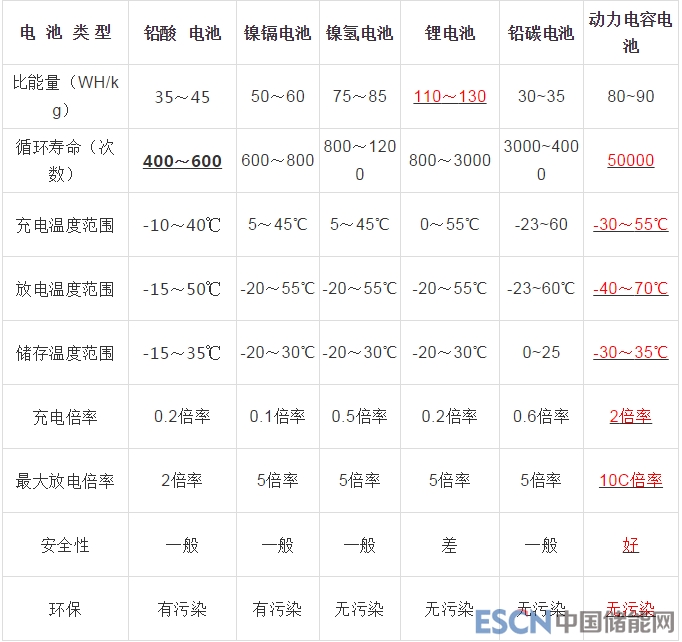 由上表可以看出動(dòng)力電容電池在多種性能上是優(yōu)于如今的主流電池的。
