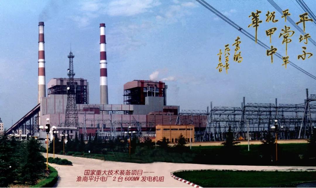 △ 1988年,我國第一臺600MW機組,安徽淮南平圩電廠我國第一臺600MW機組和李鵬題詞