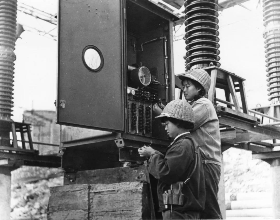 △ 20世紀70年代,淮北電廠工地,安徽電建二公司二次接線女工