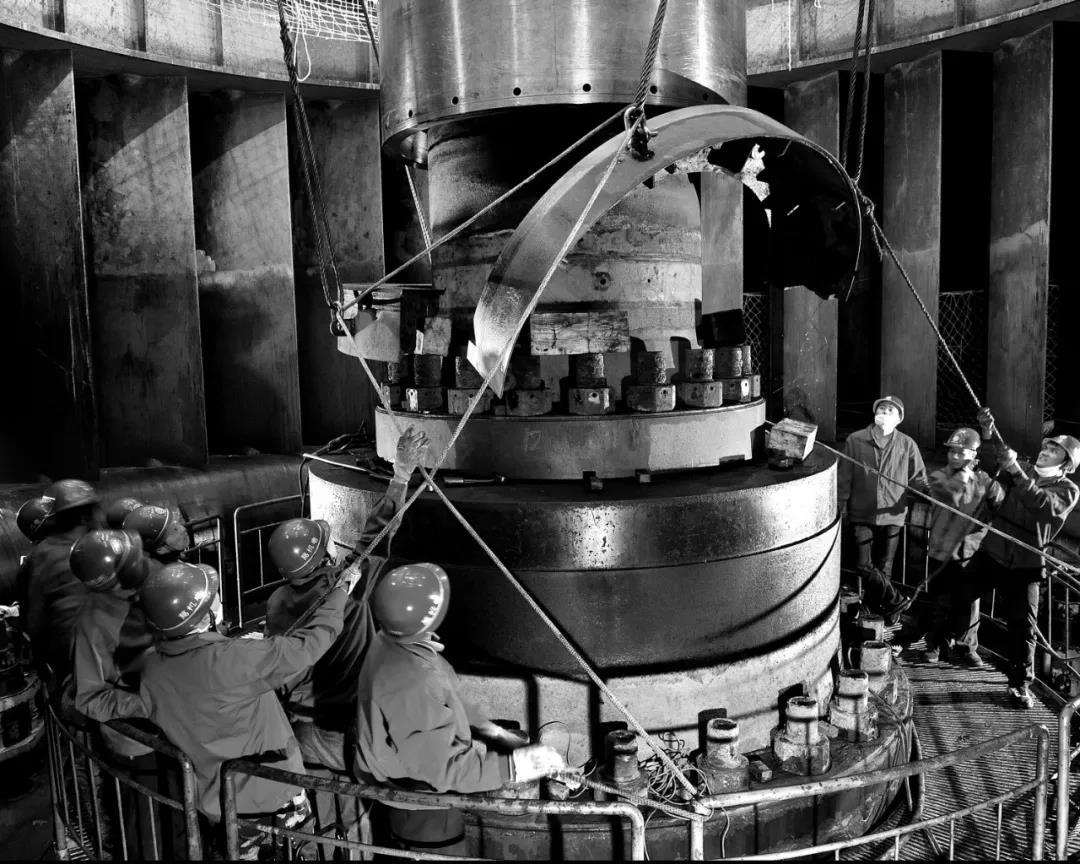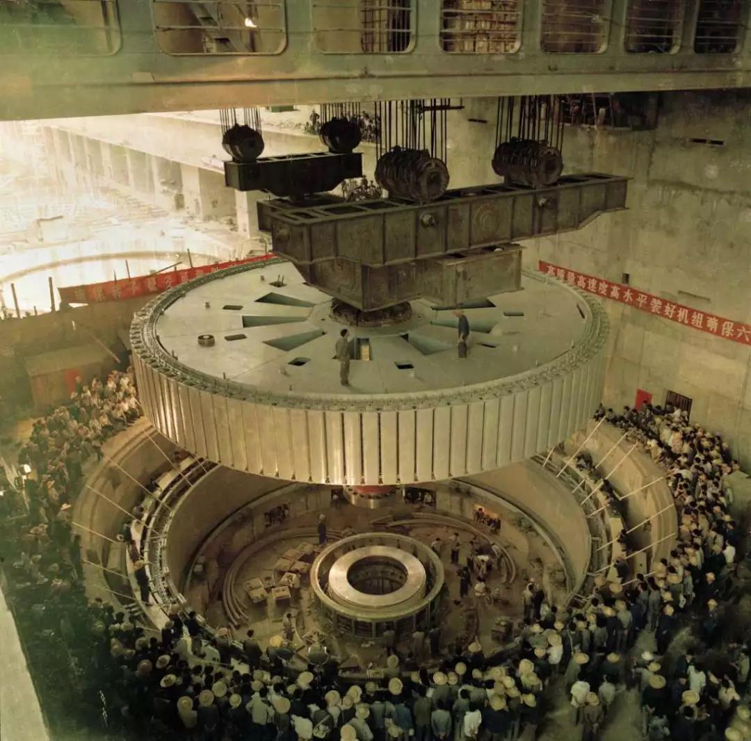△ 1981年5月,葛洲壩發(fā)電機組吊裝