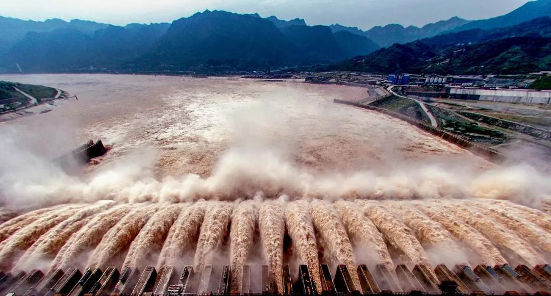 △ 2005年7月11日,三峽大壩開啟21個泄洪深孔泄洪