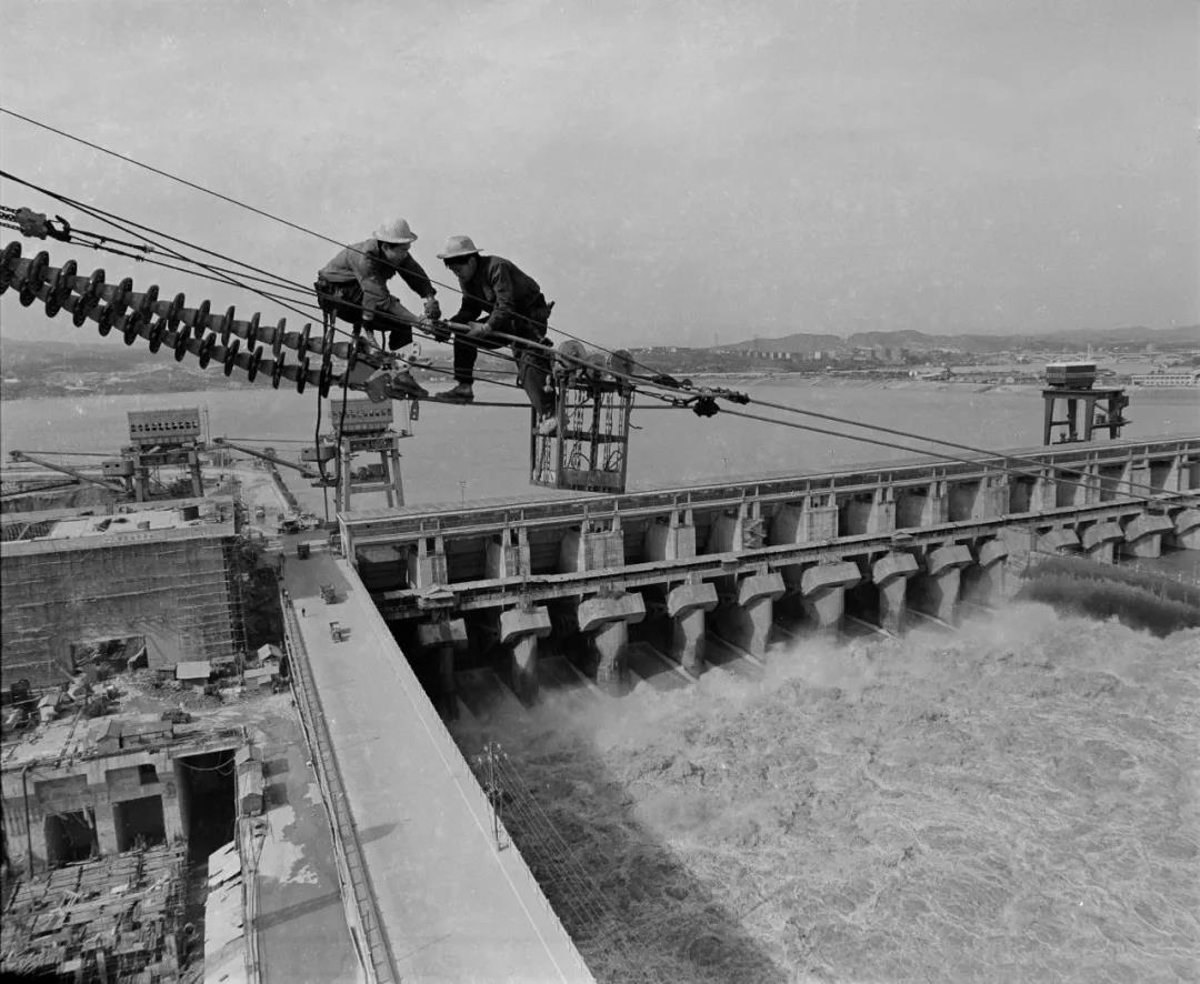 △ 1983年,葛洲壩集團電力公司工人正在架設高壓輸電線路